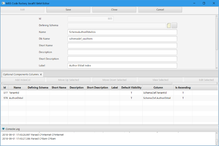The Alternate Index, if specified, must have a non-nullable string attribute as it's last column, and must be a unique index. If specified, it is used to locate instances for merge-style processing when loading SAX data and sometimes for presenting GUI choices. Either the Alternate Index or Lookup Index can be specified, but not both.