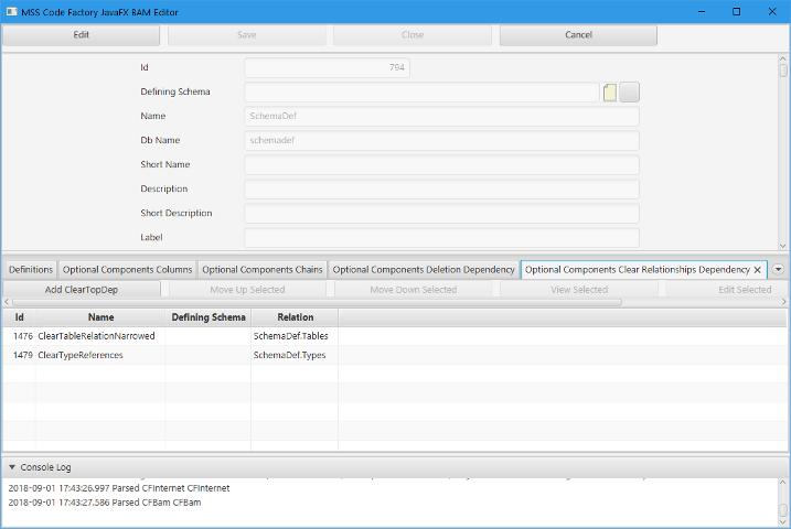 ClearDep processing is similar to DelDep processing during a delete operation, except that it indicates relations that need to be automatically cleared to null before attempting the DelDep processing or deletion of the object itself. For example, there is a ClearDep on the PrimaryIndex lookup of a Table in the CFBam model, as that relationship links a component object of the table and you would always get integrity constraint violations if you didn't clear the relationship to null before deleting those component indexes from the table.